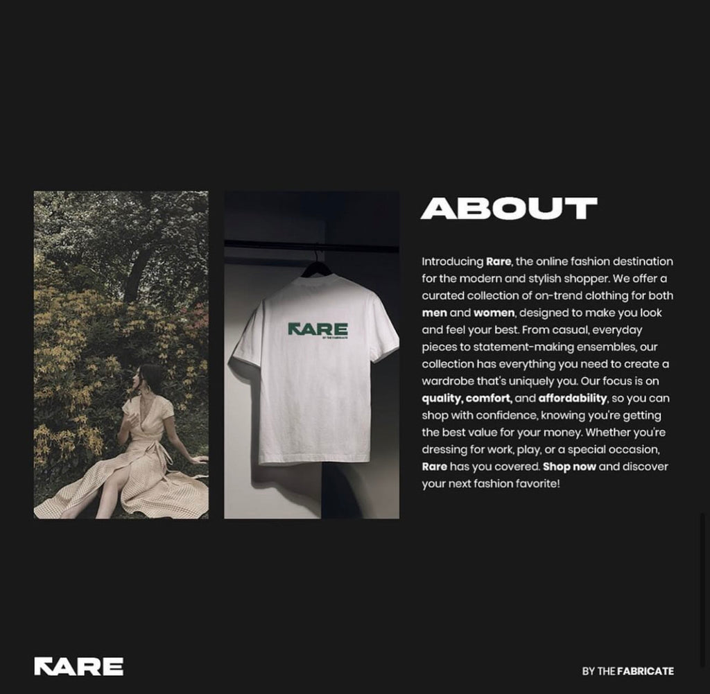 Join the RARE revolution and redefine your wardrobe with pieces that are as unique as you are. Browse our collection and grab your RARE now!